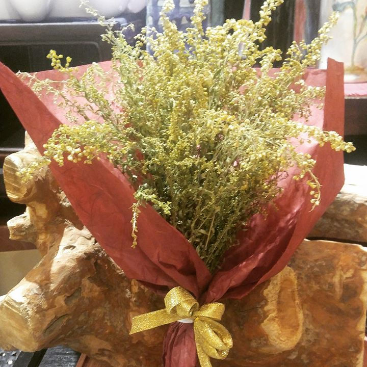 Received some packaging materials include wrapping paper and some ribbons from a retail shop and they don't need them anymore. I use the material with my dried flowers and it becomes a new item!!!